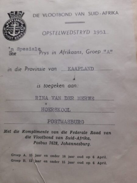 Cascione se skryftalent is vroeg reeds opgemerk. (Die foto is die eiendom van Rina Cascione, het nog nie elders verskyn nie en verskyn met haar skriftelike toestemming.)