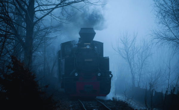 as die trein se ligte verdwyn op die spoor