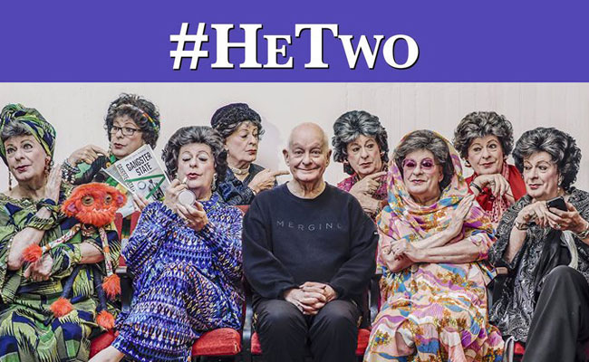 Die #HeTwo-toneelstuk se titel is ’n duidelike speling op die #MeToo-beweging wat teen seksuele misbruik protesteer, en Pieter het ook tydens die produksie vlugtig aktuele sake soos die bendegeweld op die Kaapse Vlakte en die huidige politieke klimaat van bedrog, rassisme en homofobie aangeraak.