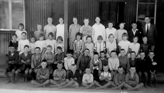 Skoolhoof en leerlinge aan die Solitaire-plaasskool gedurende die dertigerjare (Bron: Familielid se privaatversameling)