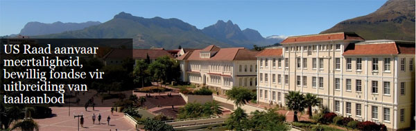 Die Raad van die Universiteit Stellenbosch het Saterdag op 'n buitengewone raadsvergadering met 'n oorweldigende meerderheid ja gestem vir meertaligheid. Dit beteken dat Afrikaans en Engels gelyke status by die US sal hê teen 2020.