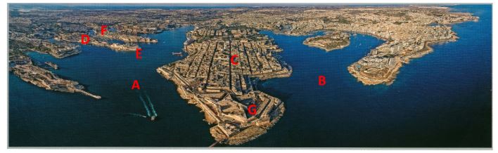 Wat die Ridders in hul lot laat berus het, was die drie veilige hawens aan die noordelike en suidoostelike kuslyn van die hoofeiland: Grand Harbour en Marsamuscetto (A en B op die foto) aan weerskante van die skiereiland waarop die hoofstad Valletta tans geleë (C) is in die noorde. Marsaxlokk is in die suidooste (sien kaart).