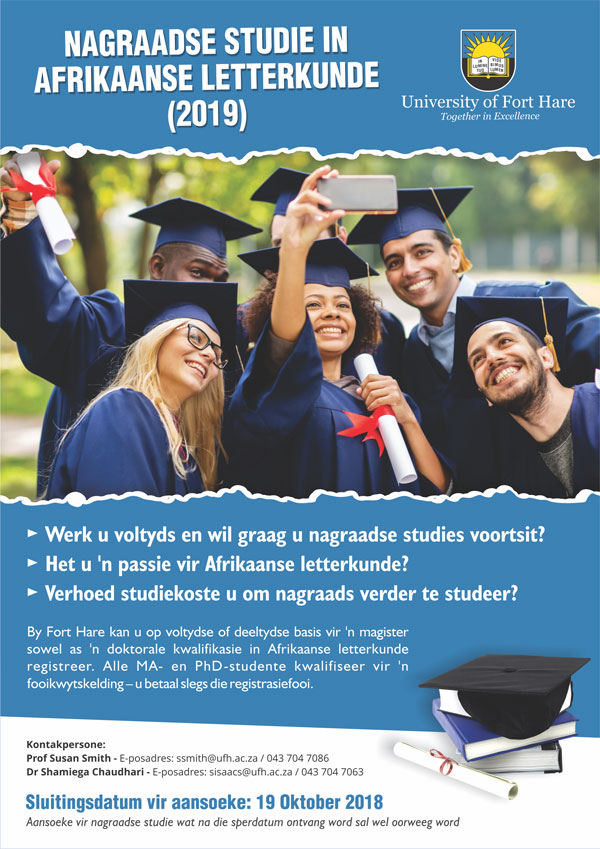 Honneurs- en nagraadse studie in Afrikaans by Fort Hare