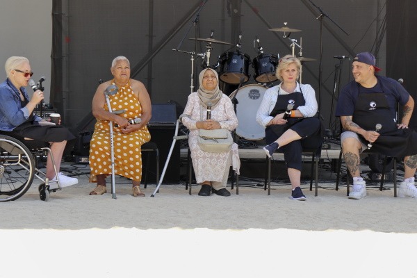 Hulle laaste optrede by die ATKV se Onse Fees op 9 Desember 2019 in die Paarl. Hier is hulle saam met Martelize Brink, self ’n kookboekskrywer, Rebecca Hurst, die uitvoerende hoof van die Hurst Culinary School, en Heinrich “H” Koen, voorheen die meesterbrein agter Madame Zingara en nou die hoof van House of H. Die ATKV het baie moeite gedoen om die tannies, toe al redelik swak, vir ’n naweek lank te vergas.