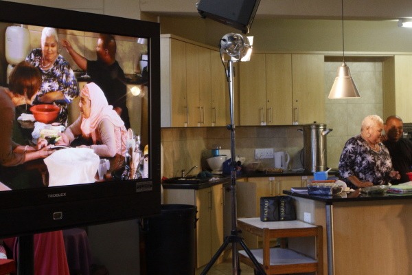 Via het die tannies gevra om ’n TV-reeks te maak, Flori & Koelsoem se kosse. Hier sit hulle in die ateljee vir die skiet van die eerste episode.