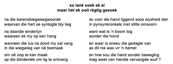 | Leser ek wyn jou in my gedig vir liefde |