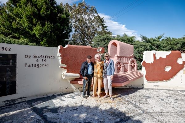 Suid-Afrikaanse monument in Comodoro Rivadavia: Esteban Thomas Naudé, Graciela Kruger en Thea Landman (foto: verskaf)