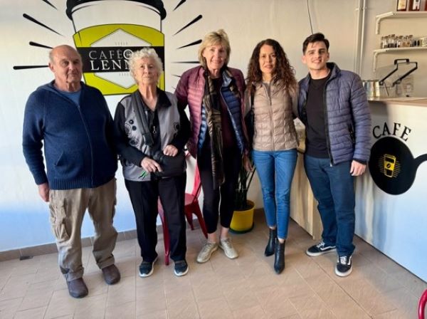 In Café Lennon, Sarmiento, Patagonië: Ricardo Pedro Kruger, Sara Grimbeek, Thea Landman, Karina Thomas Naudé en Jeremias Denis Kruger (foto: verskaf)