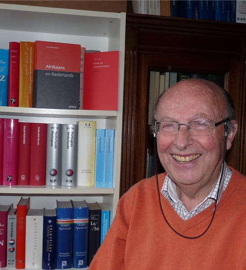 Uit: Voor de gelegenheid, 2011Prof Willy Martin voor sy boekrak by al die woordeboeke waarby hy betrokke was. Op die boonste rak staan die dikke ANNA langs sy bundeltjie Voor de gelegenheid.