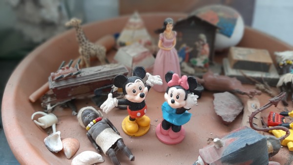 Death and the maiden, tonele uit die alledaagse Suid-Afrikaanse bestaan, speelgoedsoldaatjies, skedels, skulpe, die dolende/wonderende lyn, gestroopte interieur as landskap, die voorouer, teks as leidraad of vorm. The remains of the day. En wolke. Dora under dark cloud.