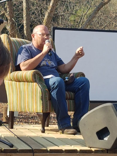 Almal word knus in een bus geprop en vanjaar is daar berg-op geseil na die Sudwala-grotte. By die eerste stop kry ons ’n blikbekertjie “grown-up grape juice” (apologie aan Wessel Pretorius) en lekker maagkos en sielskos. Dana Snyman vertel tragi-komiese stories en Mathys Roets gooi olie op die vuur met sy fluweelstem.