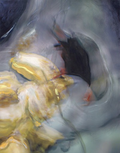 Initially when I finally got back to painting, I continued in the style that I'm known for abroad: haptic surfaces with layer upon layer of paint, as well as my initial African influences picked up here. After working through these, however, I started exploring a new technique. Where I would previously draw to set the composition for the paintings, I was now using a camera, changing the apertures, moving it about to capture the vibration of the place, object or person. Then I would work up the image on the computer, bloating the image and changing its values. This would become the armature for the paint, allowing me the tool of actual technology as well as more traditional techniques.