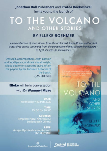 Invitation to the launch of To the volcano and other stories by Elleke Boehmer