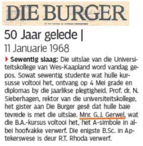 Dit is die einste Hoofsaal wat van komende Donderdag af Gerwel se naam sal dra, ’n allerhoogste erkenning van die kritieke, opbouende en toekomsgerigte rol wat hy oor nagenoeg drie dekades op die kampus gespeel het. Wie sou kon gedink het dat dit hom bestem was toe hy as ’n eerstejaarstudent daar aangekom het, ’n 17-jarige plaasseun van ’n plek met die vreemde naam Kommadagga, waarvan weinig tevore gehoor is?