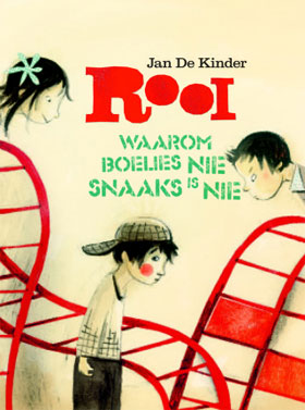 Rooi: Waarom boelies nie snaaks is nie, geskryf en geïllustreer deur Jan De Kinder en vertaal deur Amelia de Vaal.