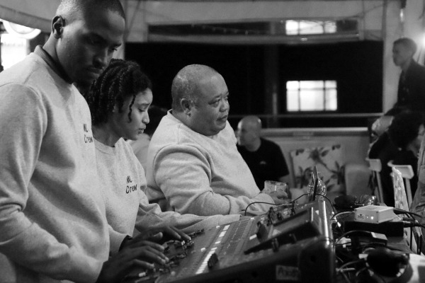Marlon Louis (middel) was in beheer van die klank. Hy is ’n onderwyser en koperblaser.