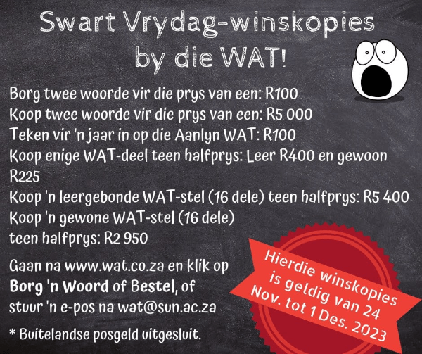 Dit is weer tyd vir die WAT se Swart Vrydag-winskopies!