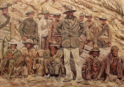 | Kgosi Toto en onderdane na hul oorgawe aan Kaapse koloniale magte naby die Langeberg in 1897 – Olie op doek |