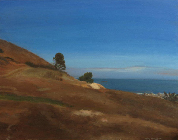 The entire human drama is set against the backdrop of an almost tree-less landscape (somewhere along the South African West Coast) with a desolate farm house and hill (a koppie) marking the horizon-line. The irony is that the Debussy title seems to imply foliage (“fragrances”), and I ended up with a painting sans plants. But the idea is that the silence of the evening and the incident is audible, that the human drama rings loud and clear, and that the fragrances are of emotions – as much as of colours – of the falling light and the transience of family life and experience.