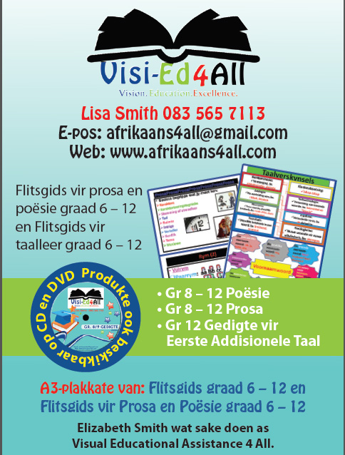 Ai, hier dink ek is baie van ons skuldig, want ons ploeg so om deur die werk te kom dat daardie kinders nie die ekstra tyd kry wat hulle verdien nie. Vir my graad 9-klasse het ek geleer om puik opstelle te skryf en die hulpmiddels tot hul beskikking te gebruik. Ek het nou onderneem om ’n boekie saam te stel en dit namens hulle op my webtuiste te verkoop, waar ek ongeveer 30 van hulle opstelle sal laat opneem sodat ander leerders dit kan koop en sien hoe dit gedoen kan word. Die wins word tussen die skrywers verdeel. Verder is ek tans self besig met ’n skryfkursus waar ek leerders hopelik volgende jaar kan help om ook te begin skryf en hulle eie boeke te publiseer. Ek sien nogal uit daarna.