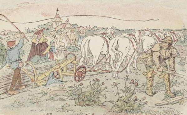 “Klein Klaas het soe goed gevoel, en gedink maa hoe kwaai hy nie moet lyk om met vyf pêre sy veld te ploegie.”