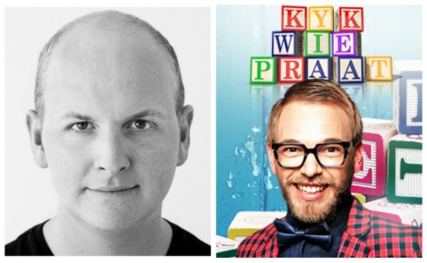 Jaco Nothnagel, vervaardiger en regisseur (foto: https://www.stellatalent.co.za/jaco-nothnagel), en De Klerk Oelofse, aanbieder van die program (foto: https://kyknet.dstv.com/program/kyk-wie-praat).