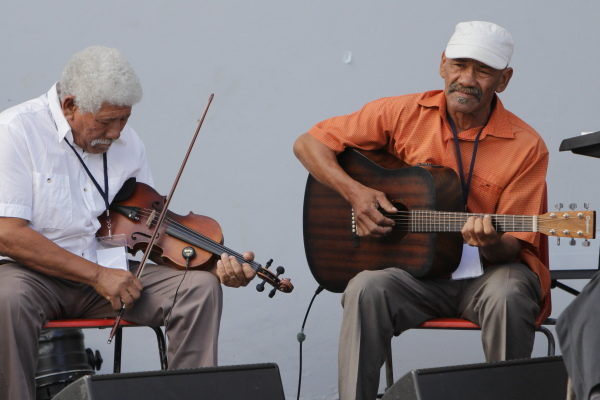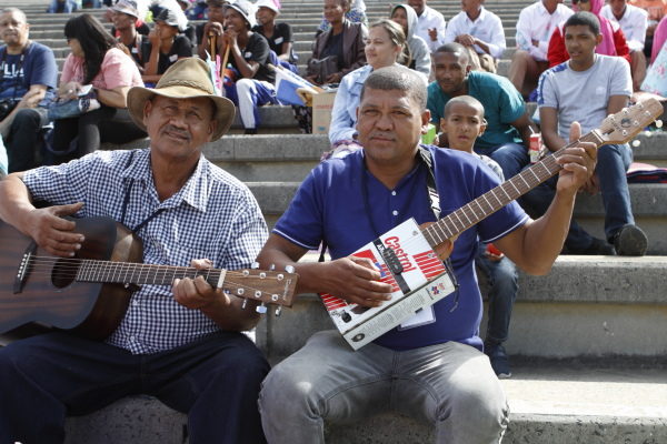 Die musiekinstrumente is saggies gepluk terwyl die skare inbeweeg het.