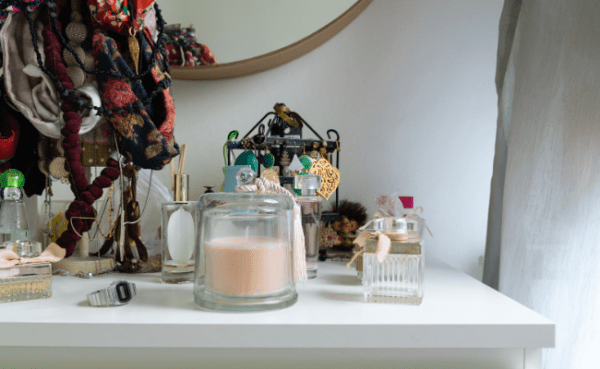 Op ’n spieëlkas tussen jou parfuum en haar haarborsel