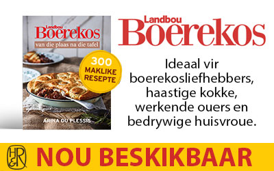 Dankie! Landbouweekblad se kostydskrif, Landbou Boerekos, se lesers het al na die eerste paar uitgawes begin vra vir ’n kookboek met van die gewildste resepte. Na 12 uitgawes van die kostydskrif het ons gevoel die tyd is reg om ’n boek saam te stel. Die boek bevat nie net resepte uit vorige uitgawes van Boerekos nie, maar ook van die lekkerste resepte uit Landbouweekblad se kosrubrieke. Die resepte is dus bekende gunstelinge, maar die kookboek is in afdelings ingedeel volgens plaasprodukte, wat dit ’n heel ander gevoel gee as ons kosrubrieke in Landbouweekblad en ook as ons Boerekos-tydskrif.