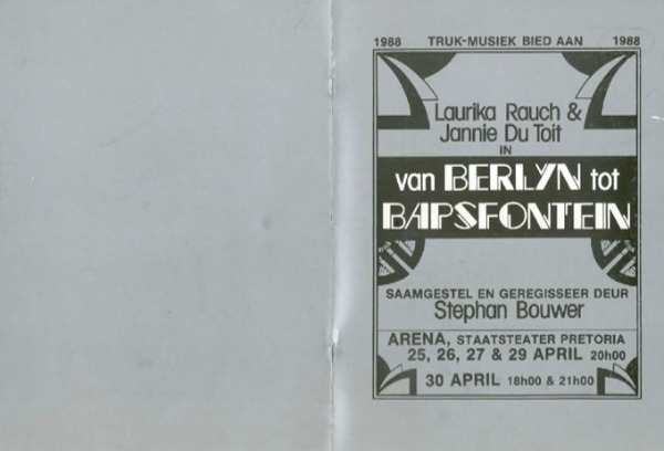 —. 1988. Van Berlyn tot Bapsfontein. Truk, 25–30 April 1988. Program.