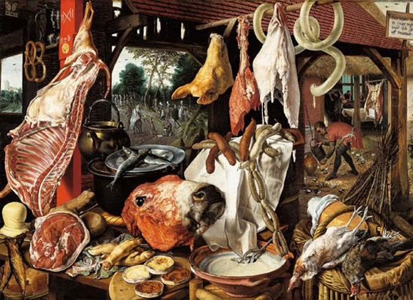 "Slagterstalletjie met die vlug na Egipte" deur Pieter Aertsen