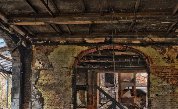 lê die puinoorblyfsels van my huis in swart en bloei.