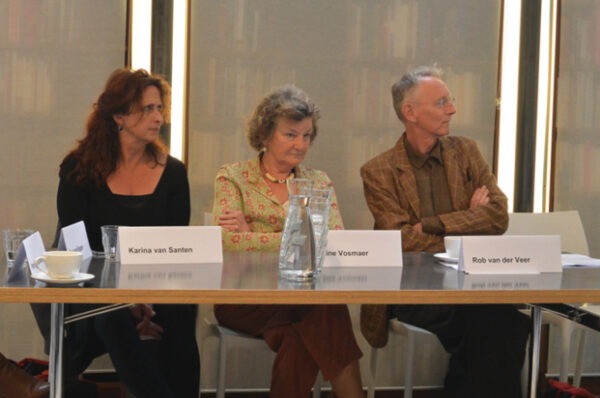 Drie bekende vertalers Afrikaans-Nederlands: Karina van Santen, Martine Vosmaer en Rob van der Veer (2014)