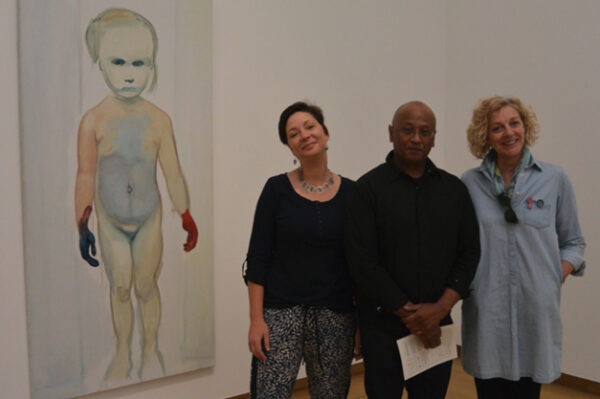 Ena Jansen (uiterst rechts) bij een beeld door Mary Sibande (2016)