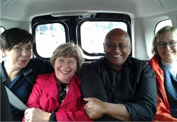 Met Sonja Loots, Irma Joubert en Kirby van der Merwe op de achterbank; foto: Etienne van Heerden (voorin naast bestuurder Jente Rhebergen)