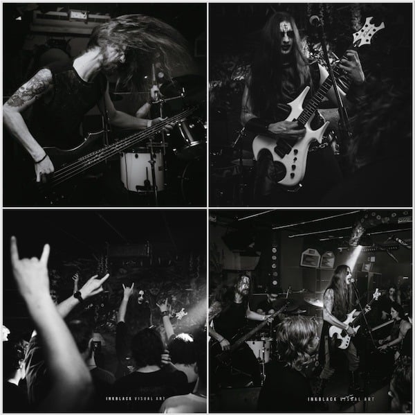 Dit is ook tydens die 1980’s dat die eerste Suid-Afrikaanse swaarmetaalgroepe ontstaan. Banchs (2022:96) skryf dat Black Rose (1981 gestig) die eerste Suid-Afrikaanse swaarmetaalgroep was, gevolg deur Lynx, Pentagon, Razor, Vigilante, Nitro, Tyrant en Warlord. Van hierdie groepe is slegs Black Rose opgeneem in Encyclopaedia Metallum (2025), ’n baie streng ensiklopedie van ekstreme metaal wat byvoorbeeld nie harde rock insluit nie (Encyclopaedia Metallum 2024).3 Suid-Afrikaanse swaarmetaalgroepe uit die 1980’s is volgens Encyclopaedia Metallum (2025) Voice of Destruction (V.O.D.), Immortal Slave, Ragnärok, Aragorn, Raven Wolf en Urban Assault. Black Rose en Aragorn word as swaarmetaal gesien, V.O.D. aanvanklik as aggressiewe punk (“hardcore punk”) en later as doodsmetaal met doem-/ruk-elemente, Immortal Slave as gotiese metaal, Ragnärok en Urban Assault as rukmetaal, en Raven Wolf as kragmetaal (“power metal”) en later Paganistiese metaal (Encyclopaedia Metallum 2025). Al hierdie groepe sing op hierdie stadium slegs in Engels. Aangesien swartmetaal gedurende die 1980’s nog in ’n pioniersfase was, is dit begryplik dat daar in hierdie dekade geen swartmetaalgroepe in Suid-Afrika was nie.