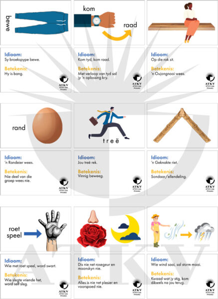’n Bordspeletjie oor idiome is net die oortjies van die seekoei van ATKV-projekte wat Afrikaans bevorder. As jy ’n Afrikaans-onderwyseres is, onthou dat Afrikaanse idiome nie vir die kinders bokant hulle vuurmaakplek hoef te wees nie. En wat gesinne betref, sal almal hier hulle ’n papie kan lag as gevolg van die pret wat die speletjie bied.