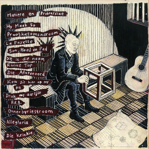 Ek onthou toe ek die eerste keer André Letoit se Vêr van die ou Kalahari gehoor het. Ek was mal daaroor dat dit net amper hierdie random “stem in die woestyn” was – hierdie totaal stripped-down sound – net hierdie doos-met-’n-kitaar aweregse serenade, die outsider narrator wat tegelykertyd binne en buite die liedjies/stories is. Dit het vir my gespreek van ’n dieper, en meer fundamentele, tipe eensaamheid en uitgeworpenheid as wat enige punk band kon regkry om oor te praat, alles verbloem agter skerpsinnige en somtyds lawwe humor. Daar was ’n ongekende suiwer poëtiese beeldskoonheid aan liedjies soos “Swart Transvaal”, “Lalie” en “Boer in beton”, en hoewel die hele ding soveel fun was om na te luister, was dit terselfdertyd op ’n amper skrikwekkende manier real en eerlik. Dis asof die lewe hom gereduseer het tot net hom en sy kitaar (ek’t dit altyd gepicture dat hy hierdie fake “show” speel alleen in ’n klein, kaal woonstel met net ’n asbak en ’n matras en papiere) – die versinnebeelding van tragikomedie. En dit is op die ou end hierdie album wat my moed ingepraat het en oortuig het om voort te bou op hierdie “tradisie”.