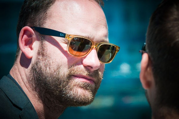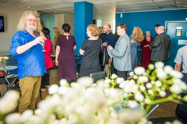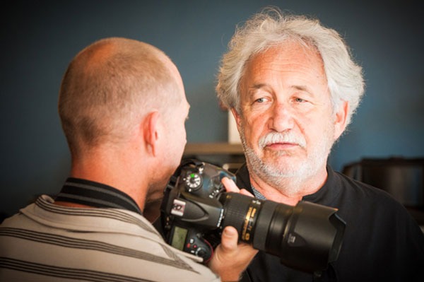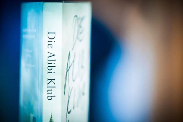 Bronwyn Law-Viljoen van Fourthwall Publishing neem 'n foto van haar skrywer Stephanus Muller voordat hy weet dat hy vandag twee maal met Nagmusiek sou wen.