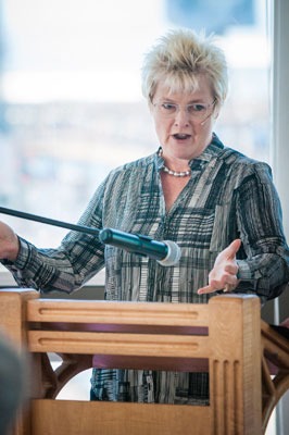 Elna van der Merwe lewer die commendatio vir die 2015 Jan Rabie-Rapportprys
