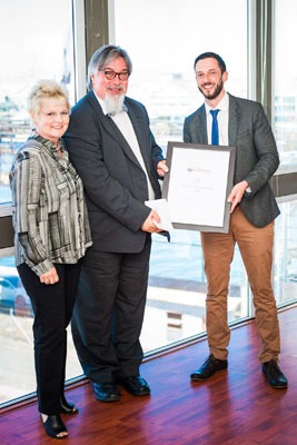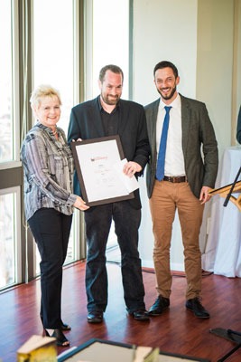 Karen Meiring, Kerneels Breytenbach (wenner van die 2015 kykNET-Rapport Boekprys vir Film met Ester) en Waldimar Pelser