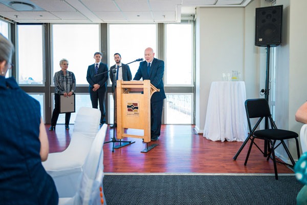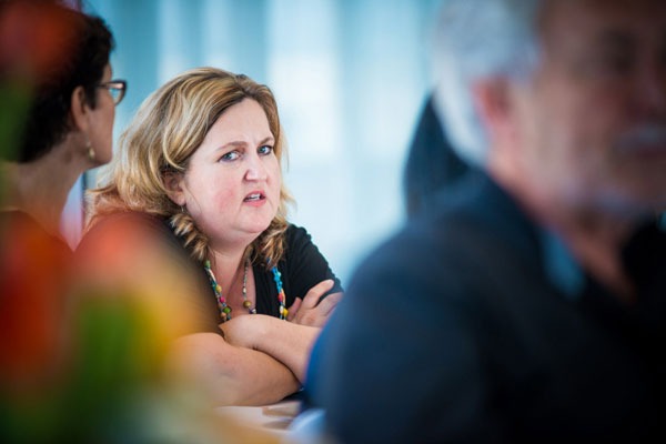 Karen Meiring van kykNET heet almal welkom (saam met Waldimar Pelser van Rapport - nie op hierdie foto nie)