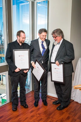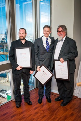 Karen Meiring, Willem Anker (wenner van die 2015 kykNET-Rapport Boekprys vir Fiksie met Buys) en Waldimar Pelser