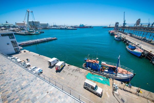 Die uitsig van bo uit die V&A Waterfront se kloktoring