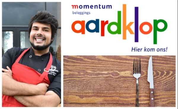Nathan Robinson and Momentum Beleggings Aardklop logo: aardklop.co.za; picture of knife and fork: Engin Akyurt on Pixabay