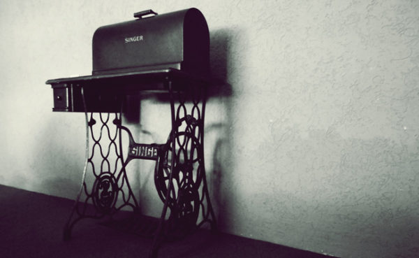 Hy tel sy pa oor sy skouer en begin loop. Die flertsies materiaal sleep deur die sand: die wit van Klein Henta se trourok, die lapgoed vir Naatjie se aanneming voor sy met die lieplapper hier weg is. Die dorpsvrouens se bont, die cream van die doodsrokke, dit alles het eindelose ure later deur die trapmasjien klaargekom.
