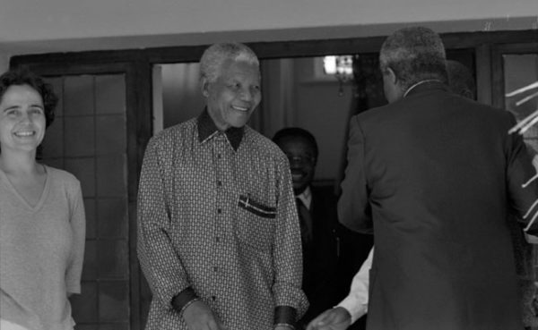 Daardie aand vertel ek haar die waarheid. Dit is Mandela! Vat ’n dag se verlof. So stem sy in om die geleentheid, die handskud, te gaan afneem. Ek is wel onrustig oor die op-die-nippertjie-reëlings, oor die feit dat sy nie in haar eie kar mag gaan nie, ens, ens. Ek besluit ek gaan waaragtig saam. Ek doen myself voor as fotografiese assistent.