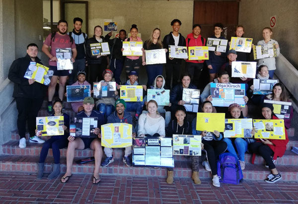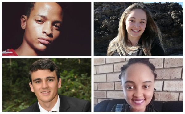 Vier van die studente wat die plakkate gemaak het: Aiden Syce, Megan Coetzee, Francois Nothnagel en Jade-lyn Jagers (foto's van elk: verskaf)