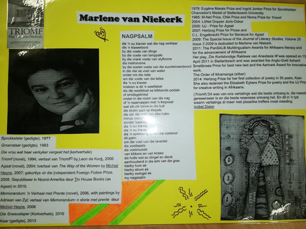 Denver Jafta se plakkaat rondom Elisabeth Eybers