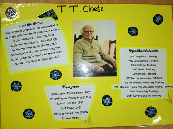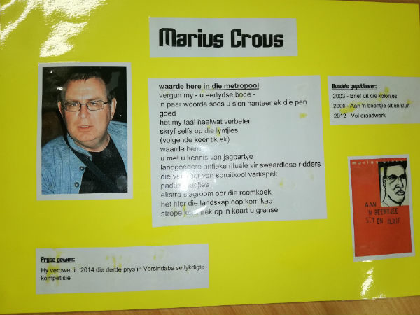 Dewald Koen, betrokke by die Fakulteit Opvoedkunde aan die Nelson Mandela Universiteit in Port Elizabeth (by die afdeling Aanvangsonderwysopleiding), se passie is Afrikaanse letterkunde en poësie. Hy het onlangs vir sy eerstejaarsklas gevra om plakkate van Afrikaanse digters en hul werk te maak. Hier onder gee Dewald nog meer agtergrond en die studente deel ook hul plakkate.